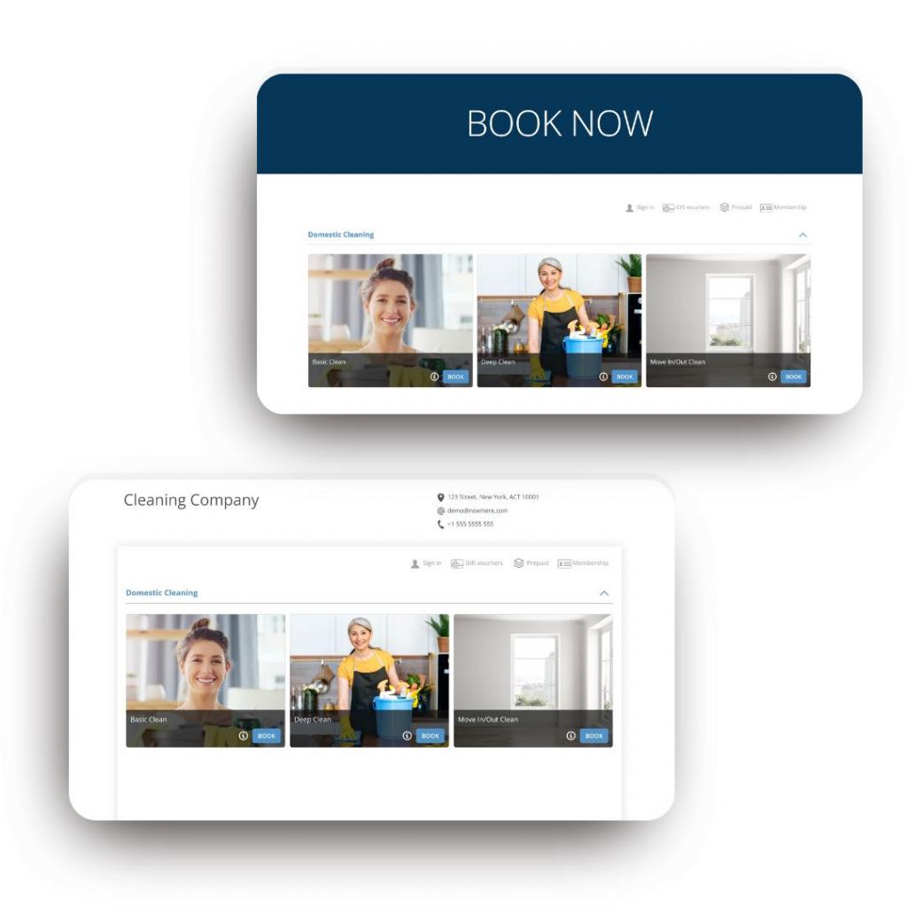 Or use the standalone brandable cleaning booking page provided by Bookeo. Simply paste your unique booking page URL into your email signature, business card, and online accounts.