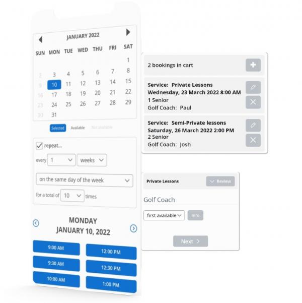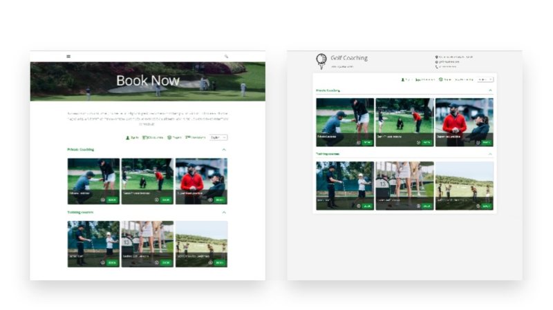 To accept bookings, you can use Bookeo’s customizable booking page or you can integrate the Bookeo widget on your website, so your students can book golf lessons right from your website – without overlays or popups.