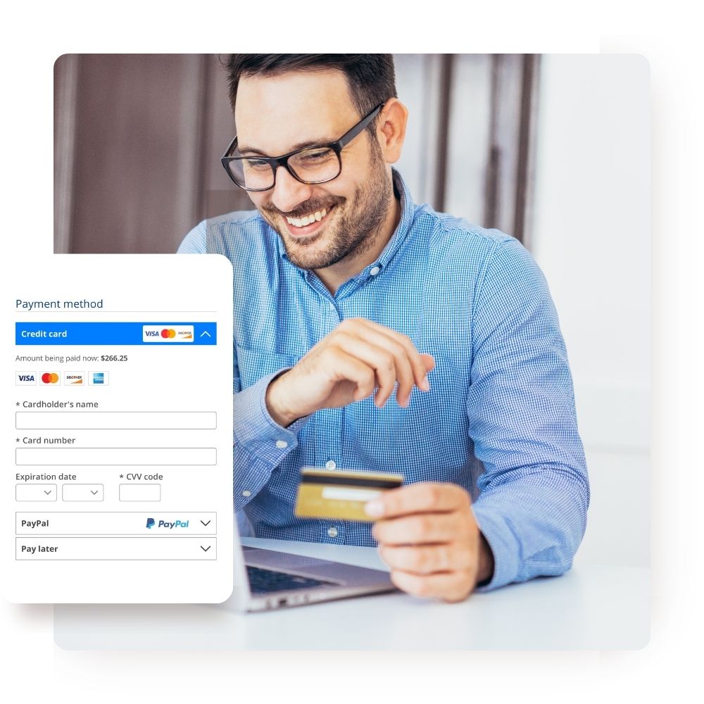 Bookeo se integra con las principales pasarelas de pago a nivel mundial, por lo que puedes aceptar pagos en línea totalmente encriptados y seguros en tu sitio web. No es necesario que utilices nuestra propia pasarela de pago.