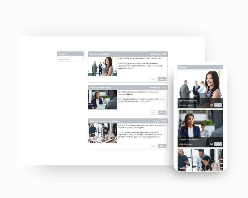 Aumente las conversiones con páginas de reserva de diseño totalmente responsive o adaptativo, acordes a su estilo y a las necesidades de su negocio. Modifique y personalice los temas en cuestión de segundos.