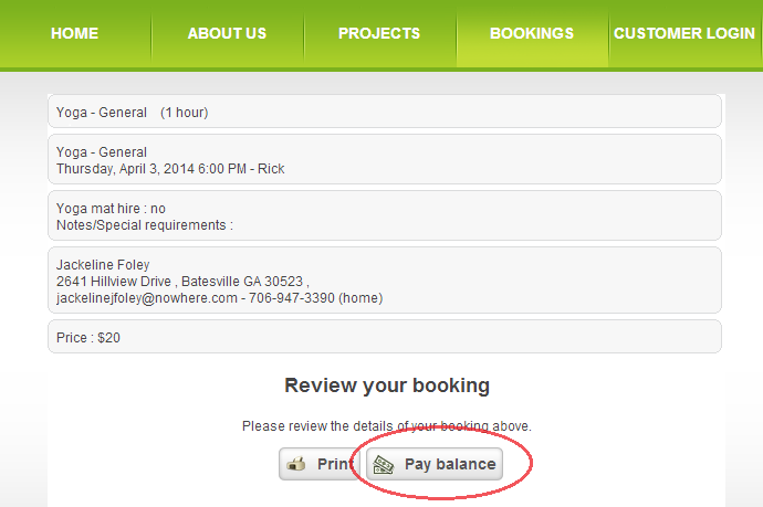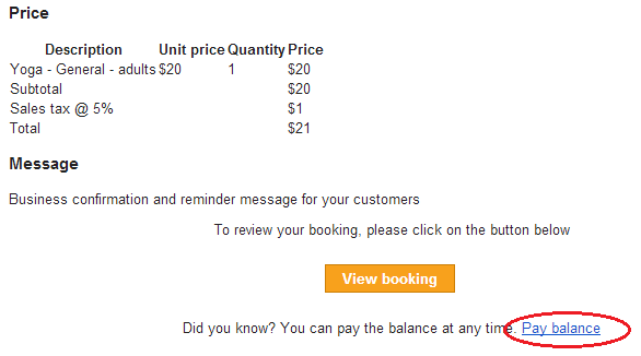 Once you’ve enabled the Pay Balance feature and your customers make a booking, a Pay Balance link will be automatically included: