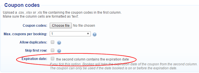 When you upload your coupon list, if the second column of the list contains expiry dates, Bookeo will apply that expiry date when customers make a booking or when you create a booking from calendar.