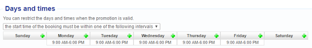If your promotion is valid only for bookings made on specific days and times of the week, for example 9am to 6pm, Monday to Friday, now you can simply set this validity from the promotion settings, without creating a special price.
