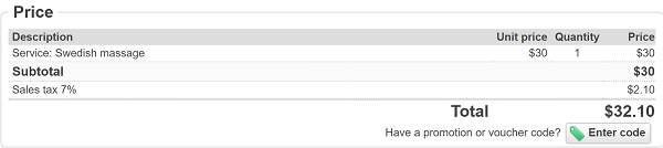 To make sure your customers see it, the new “Enter code” button for gift voucher/promotion codes is also shown at checkout, directly below the total price of the booking. It’s impossible to miss!