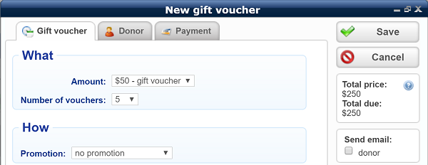 - Let customers buy multiple same-value generic gift vouchers at a time.