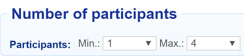 In your Promotion Settings, go to Number of Participants. For example, if your promotion is only valid for 4 participants, select “4” in the Min field and “4” in the Max field. If your promotion is valid for 1, 2, 3, or 4 participants select “1” in the Min field and “4” in the Max field, as shown here. Voila!