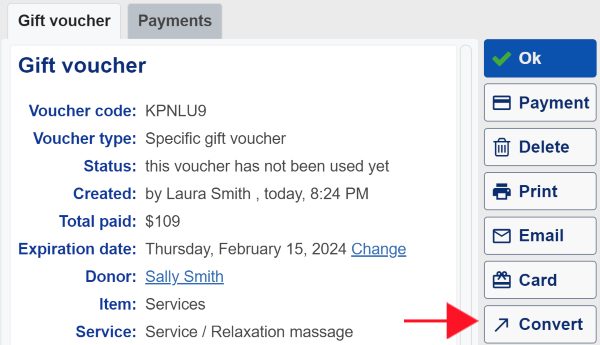 Sometimes potential and existing clients receive a gift voucher for a specific service, but they’d prefer a different service that you offer. Now it’s easy for you and your Bookeo account users to convert a specific gift voucher into a generic gift voucher. In just a couple of clicks, that voucher can be set to redeem any service that you offer.