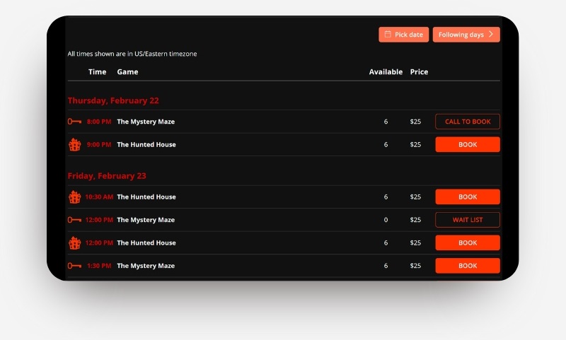 Keep in mind that you also have the choice to enable waitlists. This feature allows customers to join a waiting list when a class or tour is fully booked. Customers will then receive automatic notifications as soon as seats become available for bookings. By enabling waitlists, the widget will display a WAITLIST button instead of a FULL/SOLD OUT button.