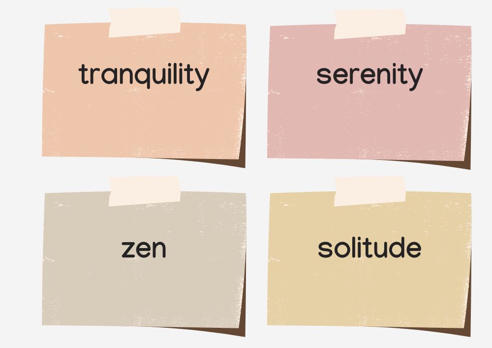 - Relaxation: Serenity, Tranquility, Calmness, Peace, Bliss, Rejuvenation