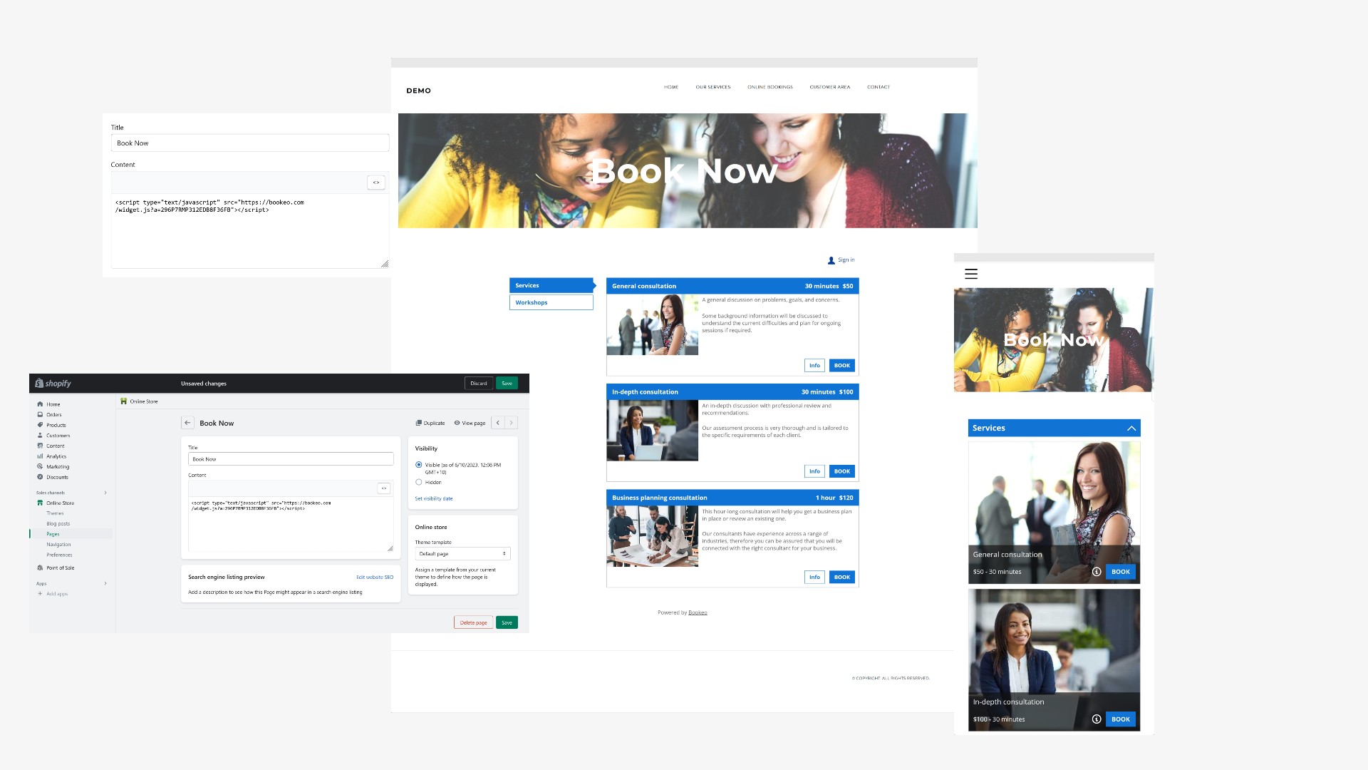- Choose and sign up for an online scheduling service that integrates with Shopify, like Bookeo.