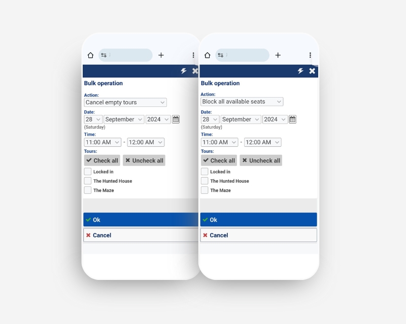 Handle unforeseen events with ease: Bulk cancel or block tours, classes, or events