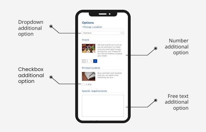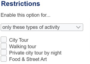 Applying a global option to both existing and new activities is easy with Bookeo. Simply specify the activities that the option applies to in the Restriction section of a global option, and voilà!