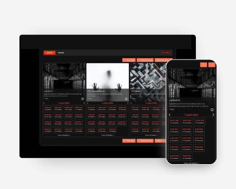 The escape room booking platform lets you customize layouts to match your brand and fits right into your website. Players pay exactly what you charge – no extra fees or booking commissions from Bookeo.
