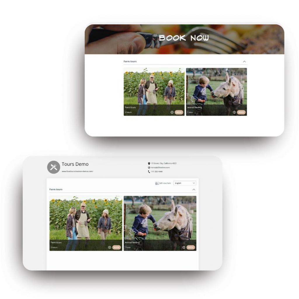 Embed Bookeo’s farm tour booking widget into your website, to let customers book farm tours without leaving your website, and without pop-up windows or overlays.