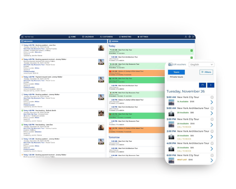 Wherever you are, you’re up-to-date with instant txt or email booking notifications and with your tour schedule automatically synced with your personal calendar.